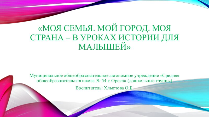 Уроки истории для дошкольников. воспитатель ДГ МОАУ СОШ № 54 Хлыстова ОБ